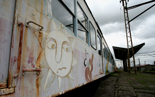 昭和34年頃活躍していた車両、末期はカラオケ車両になったという証のペイント