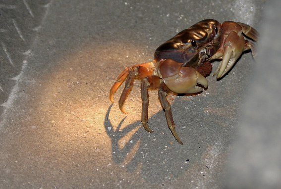 まず最初におっちゃんの懐中電灯に照らされたのは「オカガニ」