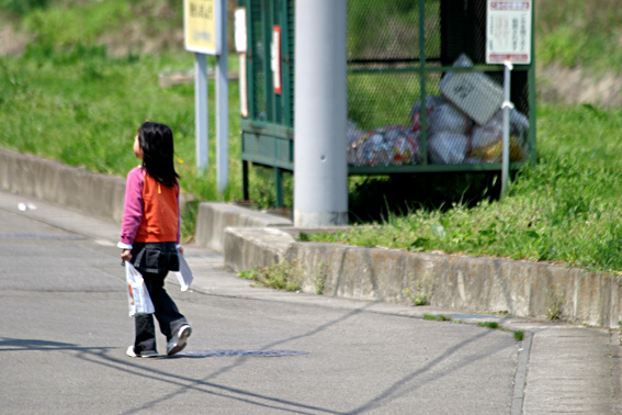 ゴミステーションまでお手伝いの少女