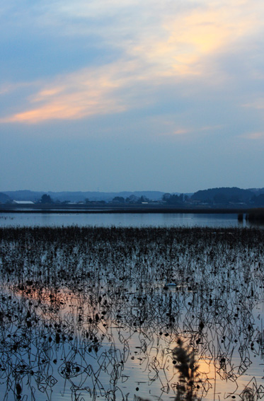 伊豆沼北側、小さな池がいくつも作られた水生植物園側に来た