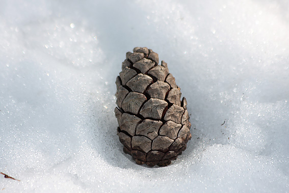 雪の上にマツボックリが乗っかってた